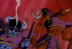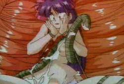 So knives fly through the air, tentacles get severed, and at least Kyomara has the sense to scream in mortal pain; unlike the monk who just kind of yelped in half-aware surprise. Miko appears, still in her undies, and declares, “Once you say that, you’re in his trap!” which sounds oddly funky when set against the horrible music. If she'd followed it up with “if the penis don’t fit, then you must acquit,” it would be just perfect; but actually she just kind of explains that the demons get stronger if the woman gives in. This isn’t arcane knowledge, folks: if I’m fucking a girl (let’s just assume this isn't a statistical impossibility) and she screams “More! MORE! YES! YEEEESSSSS!!!!!!!!!!!!!111111” then that’ll give me a second wind too, and as far as I know I don’t have any history of tentacle monster genealogy in my family.