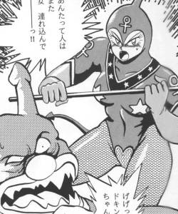While Anpanman is cannibalizing himself and Vikinn Man is doing what a dickhead does best, a spandex-clad Women's Studies major comes in and busts up the funtimes. She was originally coming in to complain about Kei and Yuri's tits hanging out of their shirts, but beloved children's characters taking advantage of women? Time to get Valerie Solanis on some patriarchy pigs. Concluding this story, Anpanman's undoubtably tasty friends gather around and survey the havok, while our heroines slink off distinctly unsatisfied. While some might say that acting as collaborators with the patriarchal establishment can never lead to a woman's true fulfillment, I'd probably just say that their delicious partners simply left them hungry an hour afterwards. That's what all those simple carbs will do to you, ladies.