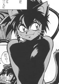“This is a hentai Dirty Pair doujinshi by Studio Katsudon. This Dirty Pair doujinshi has much higher degree of hentai power than the first edition. I like this one. They are basically WWWA travel consultants. Unlike other travel consultant, Kei and Yuri do different kinds of job. They are notorious famous girls in their division, due to their Hentai character. Yet, they are sexy, cute ,and they love to entertaining people in many way at a party !) One night, they pick up a man-looking cat on the way home. They bring it (him?) to their home and use him as a home-helper. He is not only doing the house works, he but also entertains Kei and Yuri. Please send a email if you would like to purchase this beautiful doujinshi. Payment should be made by only international postal money order.”