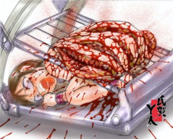 Every woman being brutally chopped up and skullfucked in his art isn't a woman. It's a show of strength for men, a sign that they need to fight back against what women are making them, put down the Belldandy key-chain, and rise up against being a complete pussy. The offensiveness is intentional, and makes sense. What a better way to turn you pussies into men than by evoking the emotion that makes a man truly a man, full out unrestricted rage. Every picture is a punch in the head for the Legolas image that women want us to be, and a empowerment to the Gimli in us. Or at least that's what I learned from watching Fight Club.