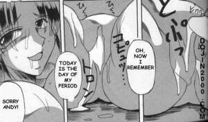 “Today Is The Day Of My Period, Sorry Andy”. Wait, what? Even I can't make sense of this one. Dojin2000, you've just outdone yourselves again. So, while it may be entirely off subject, all I can say is that takin' the train through the tunnel on one of those heavy-flow days is really fucking gross and you shouldn't tell me about it. Especially not on forums for web sites devoted to cartoon porn. I mean, not referring to anyone in particular here, because I know you're an audience of good taste and reasonably high class, right? Right.